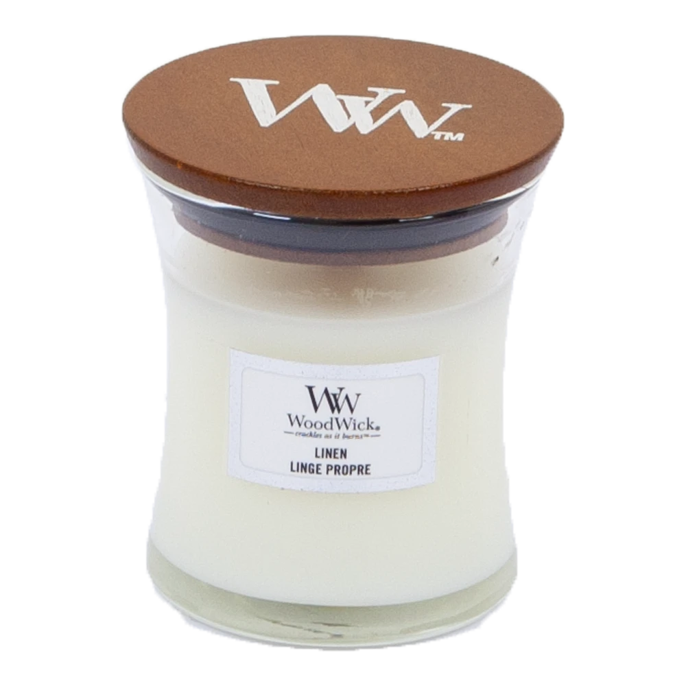 De fijne geur van schoon wasgoed dat hangt te drogen in een zacht zomerbriesje. De Linen geur van Woodwick heeft een heerlijk frisse geur!